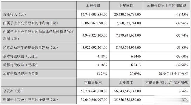 财报还显示,2025年上半年迈瑞医疗的总营收为167.43亿元,同比下滑18.45%;净利润为50.69亿元,同比下滑32.96%;扣非净利润为49.49亿元,同比下滑32.94%。