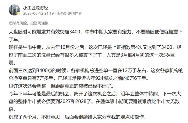 第2次是2025年4月到6月,我在4月建仓恒生医药。并在6月12日、18日、24日先后发文大盘爆发在即。
